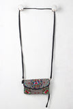 This small crossbody bag features a colorful embroidered floral design, full lining with four inner pockets, removable wrist strap and body strap. Finished with a magnetic snap flap closure with inner zipper closure.