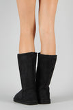 Keep your feet warm and cozy this season with these comfy mid calf boots ! It features round toe front, stitching details, and low flat heel. Finished with cushioned insole and faux shearling interior lining for all day comfort. Easy pull on style.