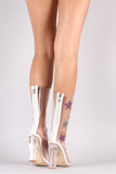 Stars Accent Lucite Pointy Toe Chunky Heeled Boots