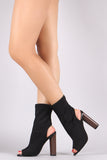 Elastane Peep Toe Cutout Chunky Heeled Booties