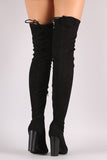 Suede Drawstring-Tie Chunky Heeled Over-The-Knee Boots